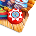 Ребёнок легко освоит включение звука: по нажатию на кнопку начинает проигрываться песенка, при втором нажатии звук выключится. Нажав на кнопку ещё раз, ребёнок услышит следующую песню.