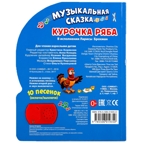 Музыкальная книжка "Курочка Ряба" содержит 10 песен и текст любимой сказки. На каждой страничке крупные красивые иллюстрации.