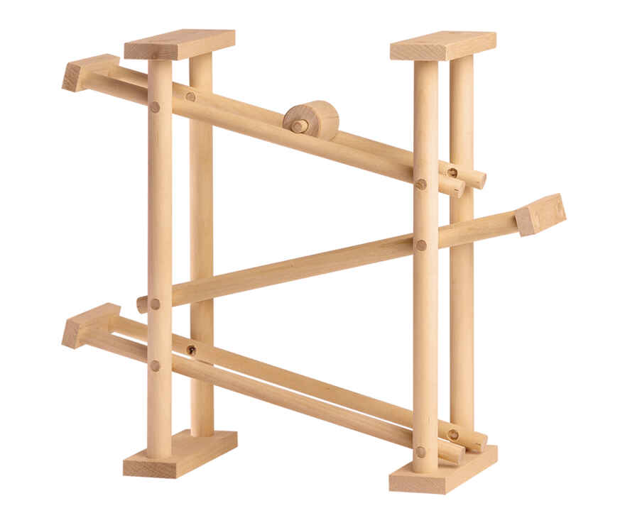 Маленьким детям будет интересно наблюдать за деревянной катушкой, которая сама скатывается вниз по деревянным дорожкам.