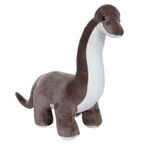 Мягконабивной плюшевый брахиозавр серо-коричневого цвета с добродушной мордашкой. Это самый крупный древний динозавр, в рационе которого были только листья. Брахиозавр потрясающий! У него мягкое тельце и лапки, которые отлично заменят подушку, если малыш устал от активной игры, представляя себя исследователем Юрского периода.