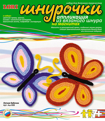 Аппликация из вязаного шнура на магнитах "Летние бабочки"