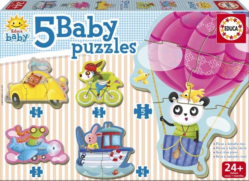 Пазл состоит из пяти картинок. Крупные элементы пазлов, удобные в манипулировании и эргономичные для детской руки, абсолютно безопасны для ребенка.