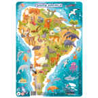 Пазл в рамке "Южная Америка" позволяет показать детям, какие животные обитают на материке, в его водах, воздушном пространстве. На яркой картине можно увидеть иллюстрации более 30 животных, которые обитают в Южной части Америки.