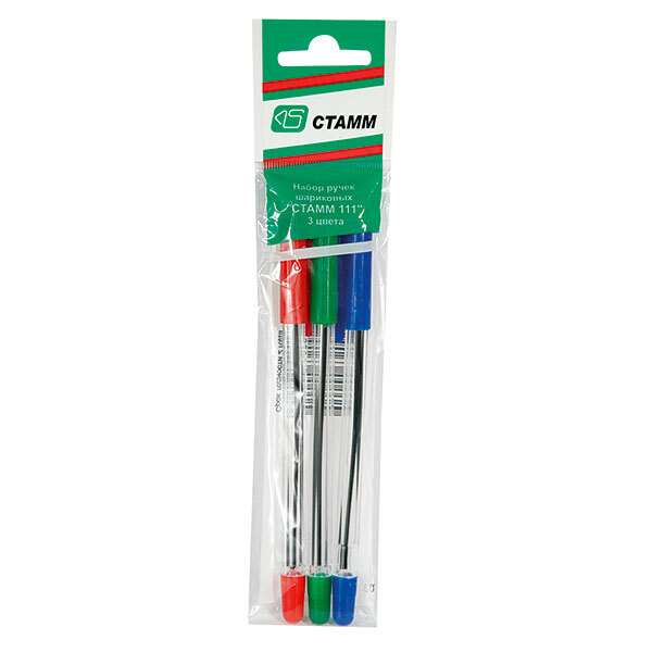 Набор шариковых ручек СТАММ 111 1,0 мм 3 цв./уп, арт. РС06