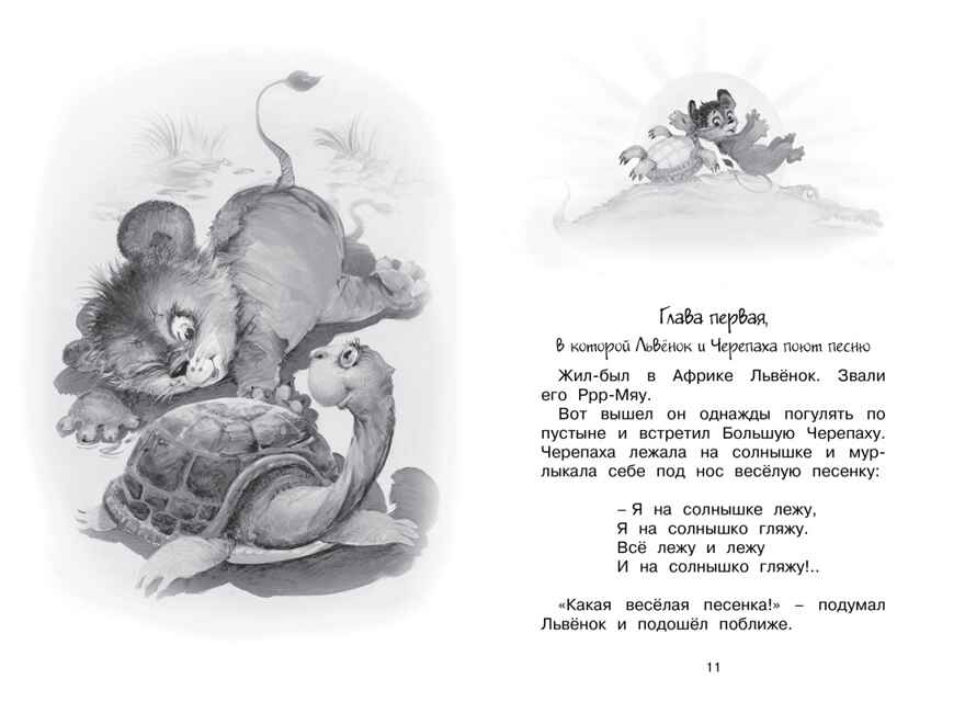 В книгу вошли любимые многими малышами сказочные повести Сергея Козлова о приключениях Львёнка по имени Ррр-Мяу и Большой Черепахи: «Я на солнышке лежу» и «Как Львёнок и Черепаха отправились в путешествие».